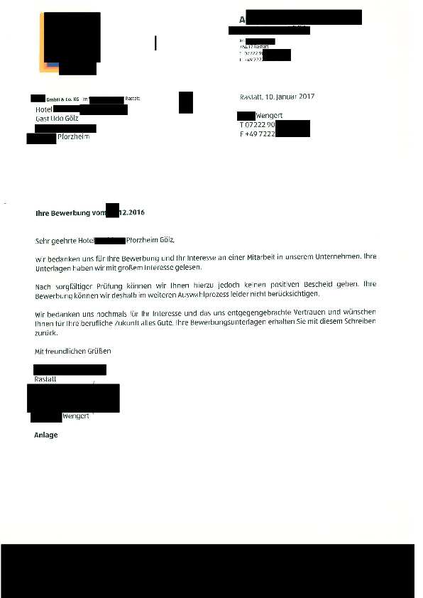 Nur aufgrund des betont freundlichen Verhaltens von Verkäuferinnen in der Filiale im Jahr 2016, das überraschte, hatte ich mich 2016 bei dem Konzern in Rastatt beworben. Dafür gab es dann eine beleidigende Absage.(anonymisiert).