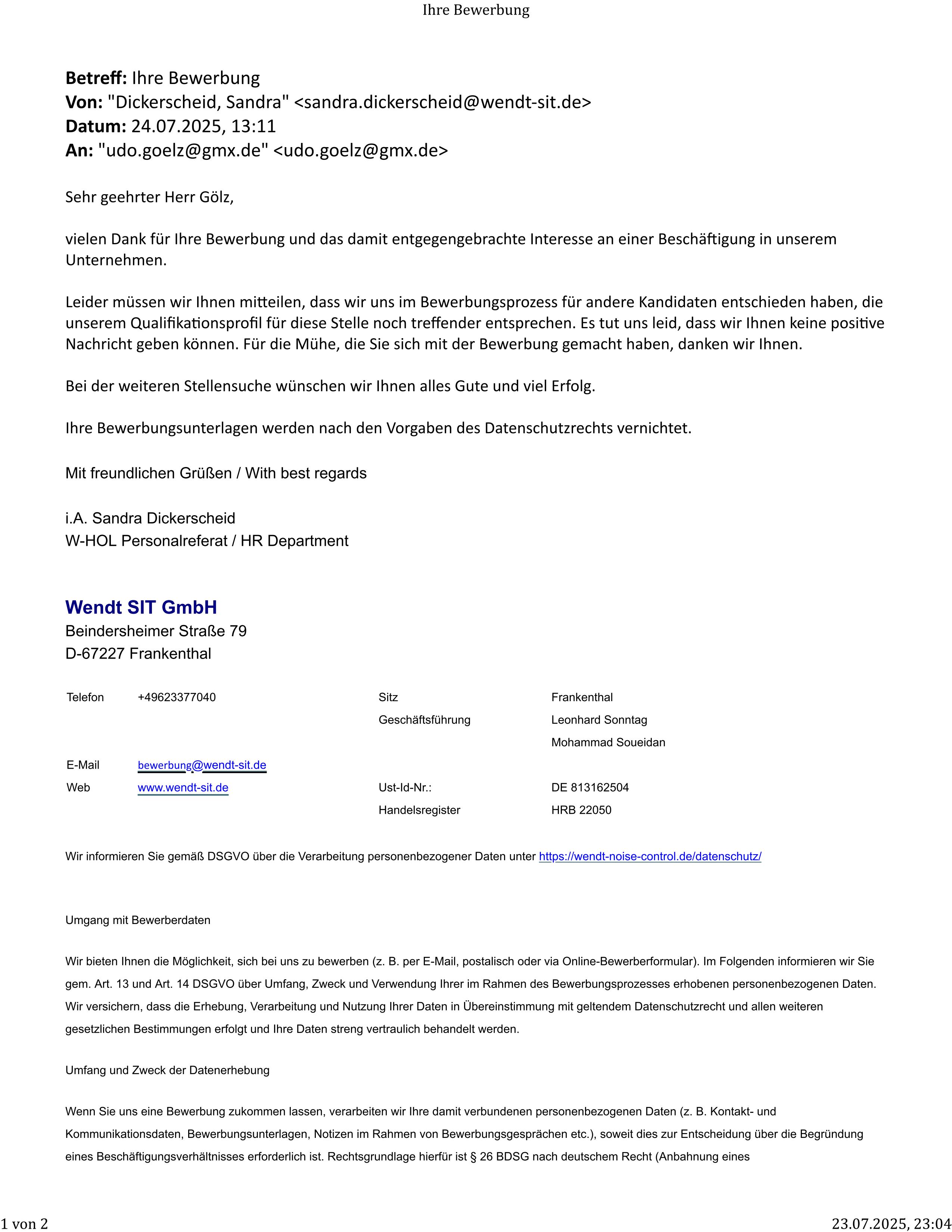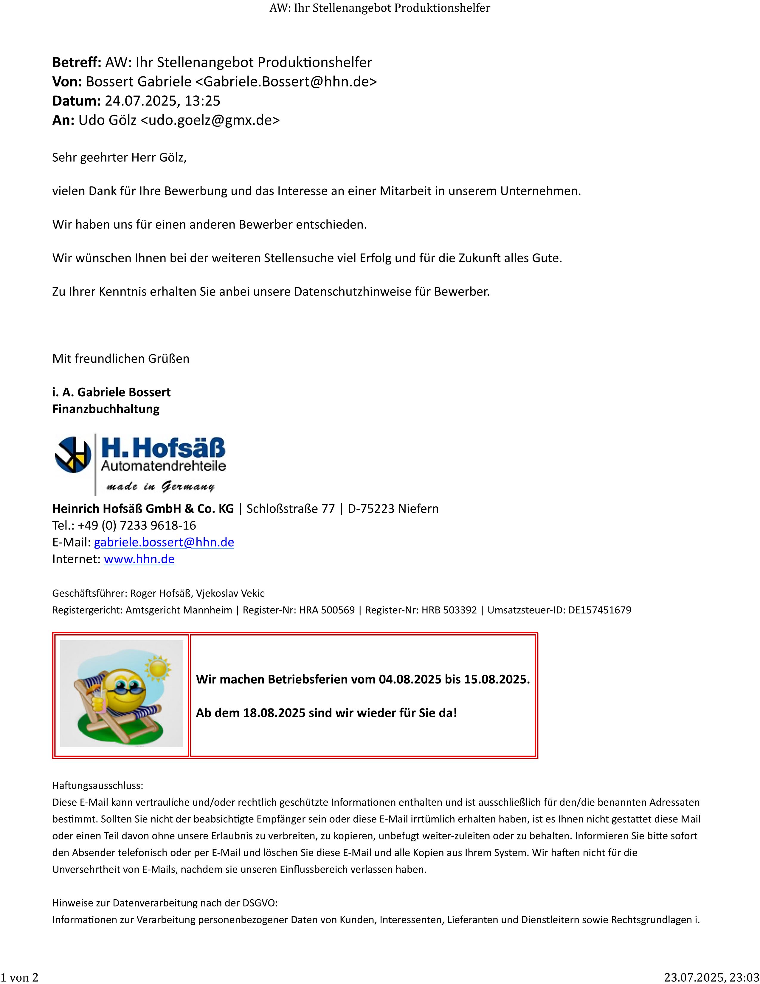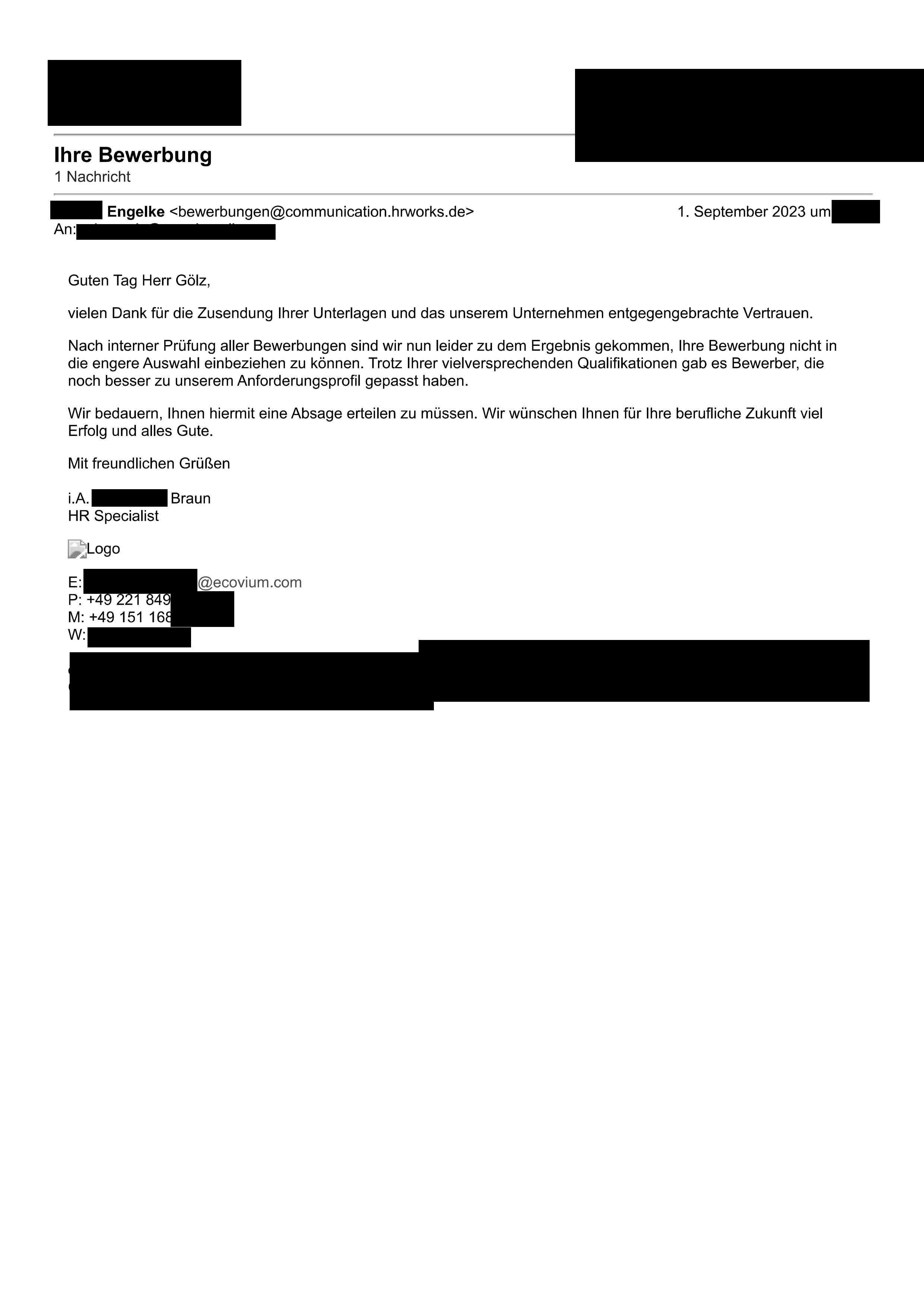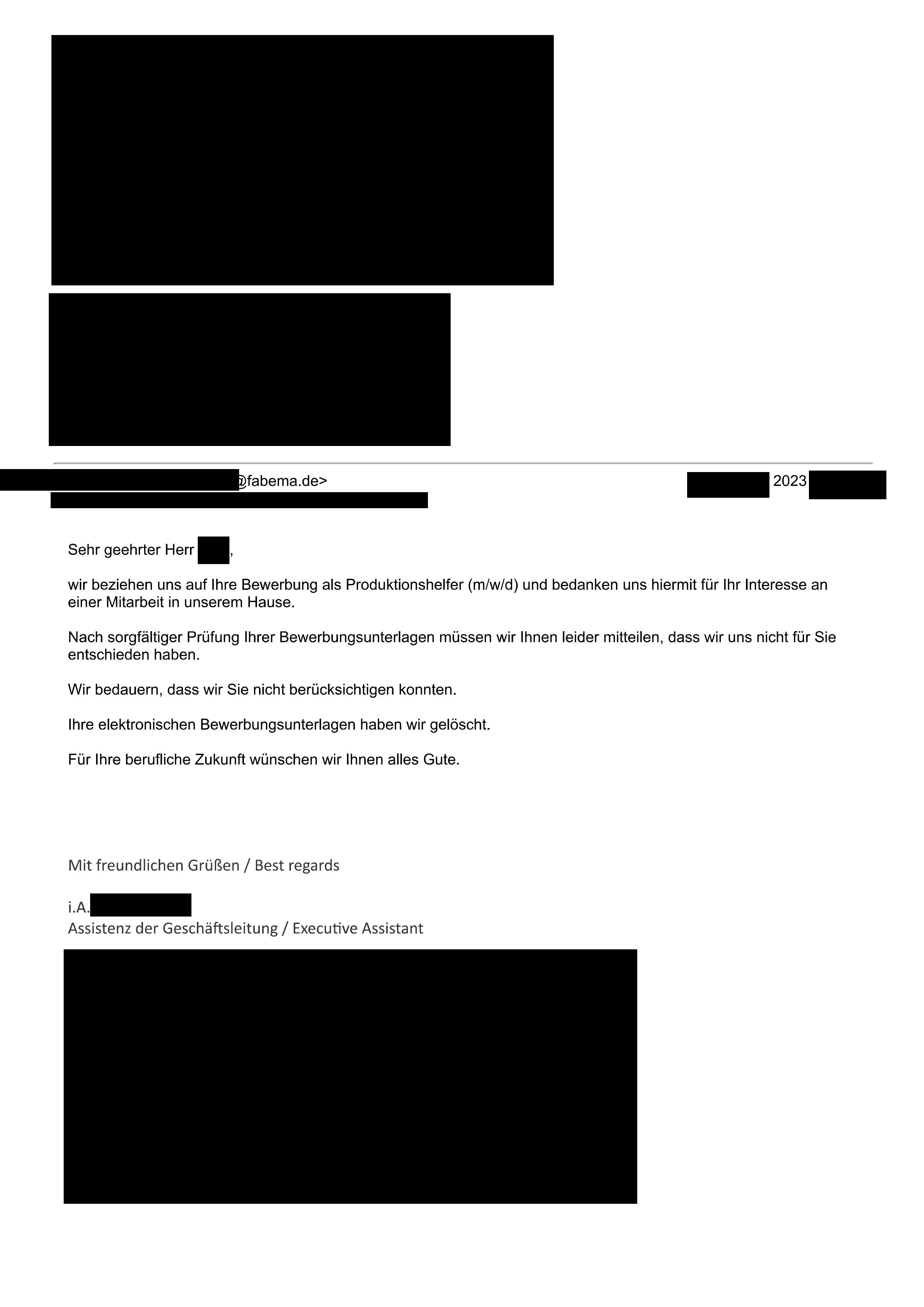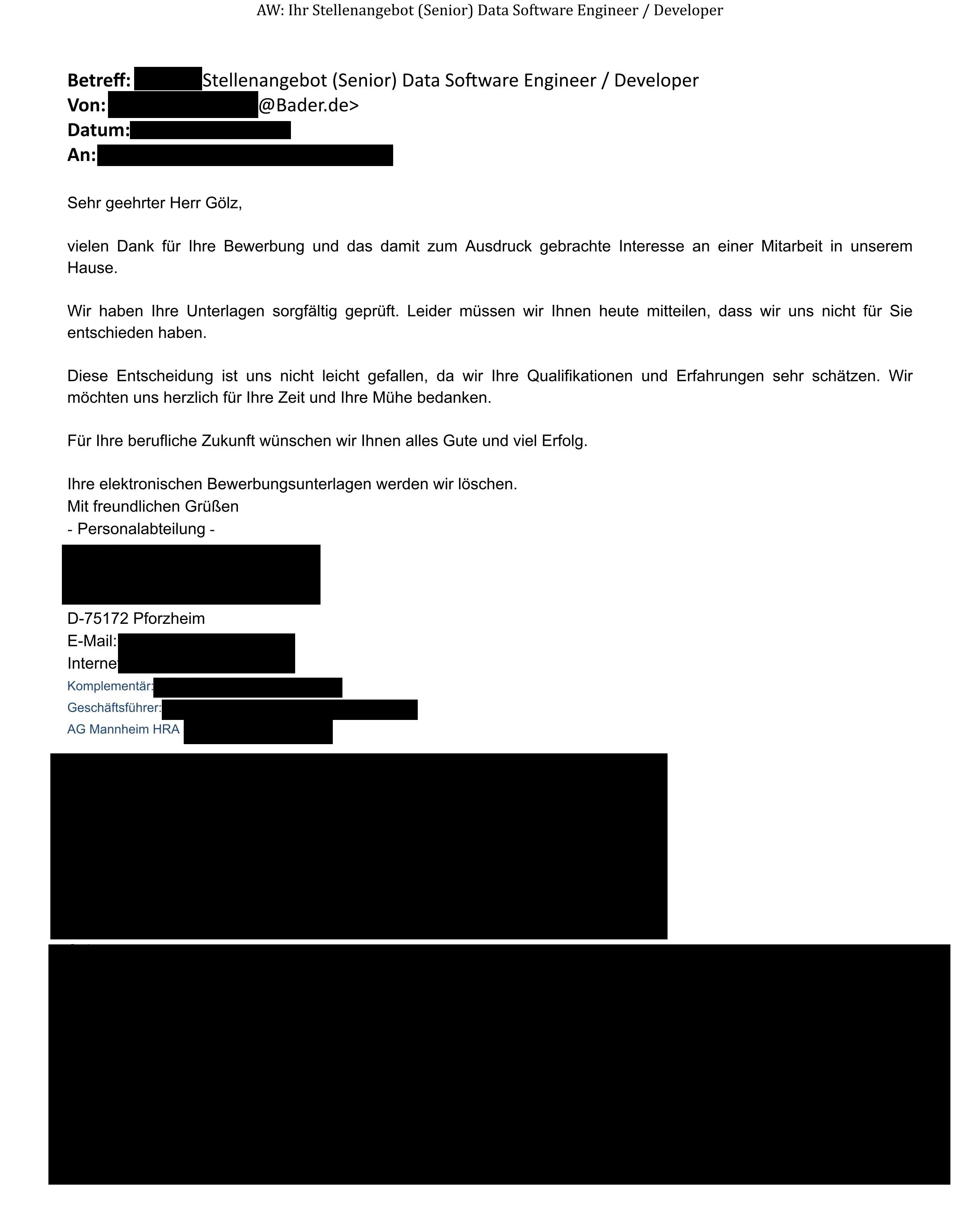 Die Absage von Bader in Pforzheim, Versandhandel.