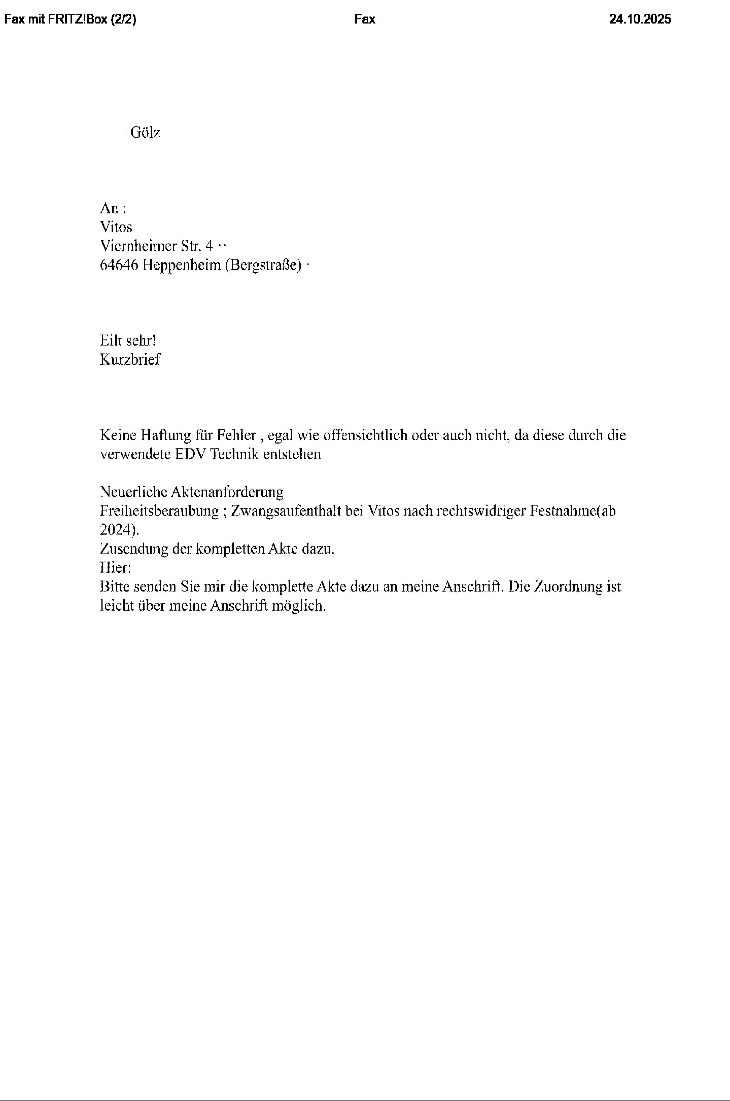 Die Akteneinsicht muss deshalb wieder beantragt werden, weil ein früherer Anwalt diese nie beantragt hat, weil die Kosten für eine gute Rechtsanwaltskanzlei bisher nicht auf dem Weg der Verfahrenskostenhilfe erstattet werden und weil die Vitos Klinik selbst , bis auf einen einzelnen lapidaren Absatz nie Akteneinsicht gewährt hat, was grundgesetzwidrig ist.