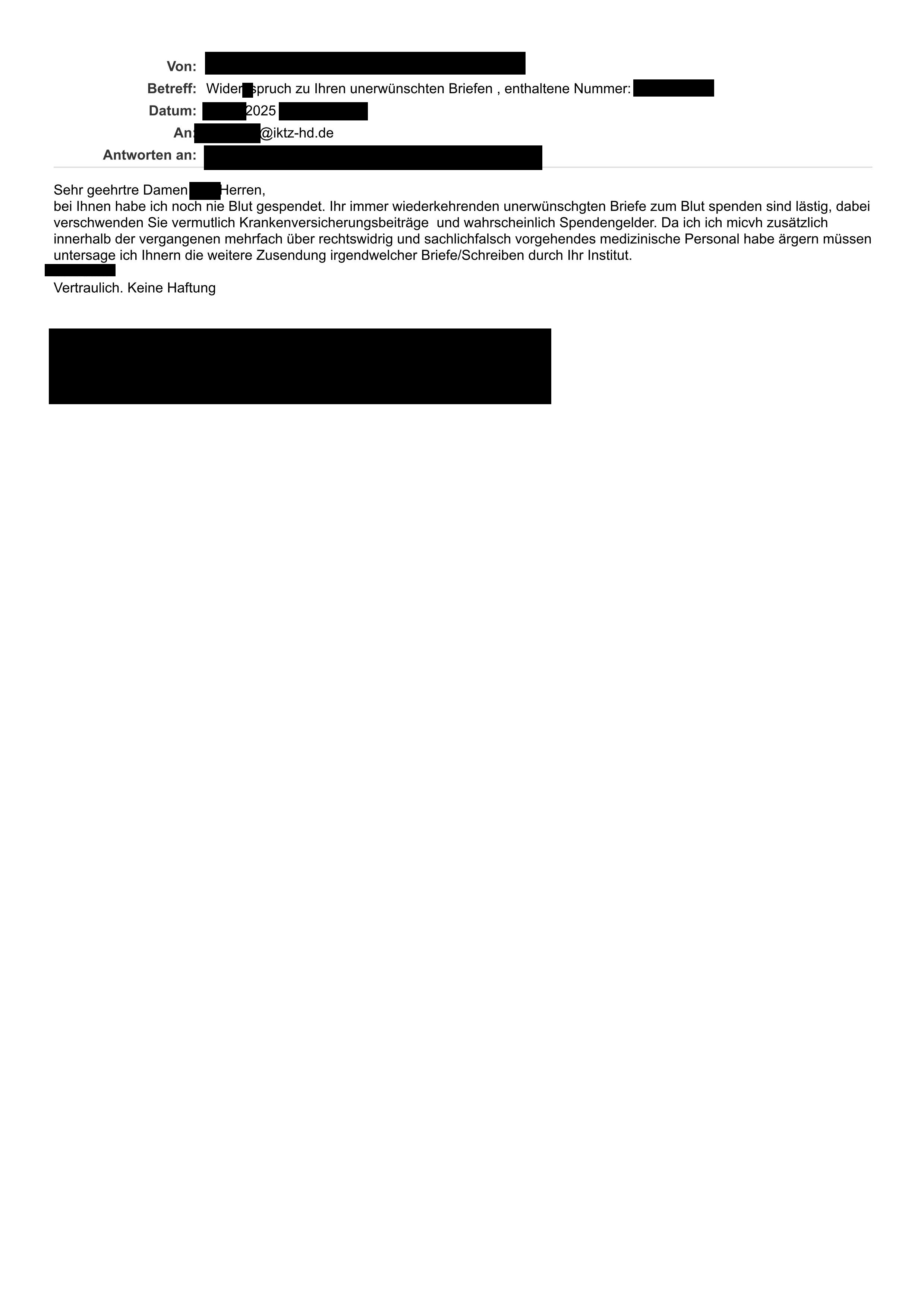 Mordfall Jürgen Gerstner - Belästigende Briefe vom IKTZ Im Neuenheimer Feld 583 69120 Heidelberg