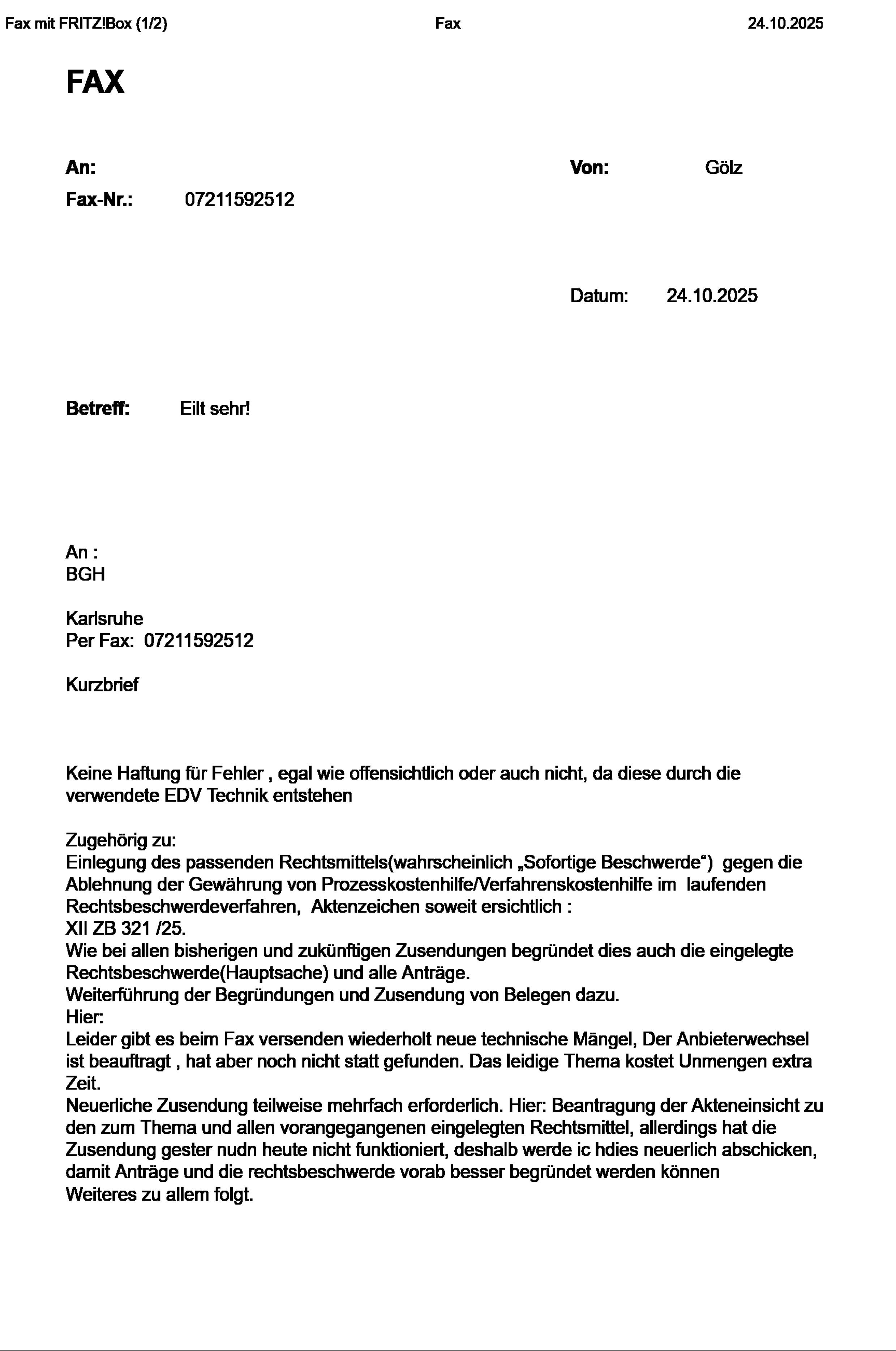 Mordfall Jürgen Gerstner - Erzwungene zweifache Korrekturzusendung(Fehler durch EDV Technik, da ich tatsächlich ledig bin und alleine wohne, dann Fehler 1und1) an de nBGH, da die Übertragung durch 1und1 bei m ersten Versuch wie oft nicht funktioniert hat