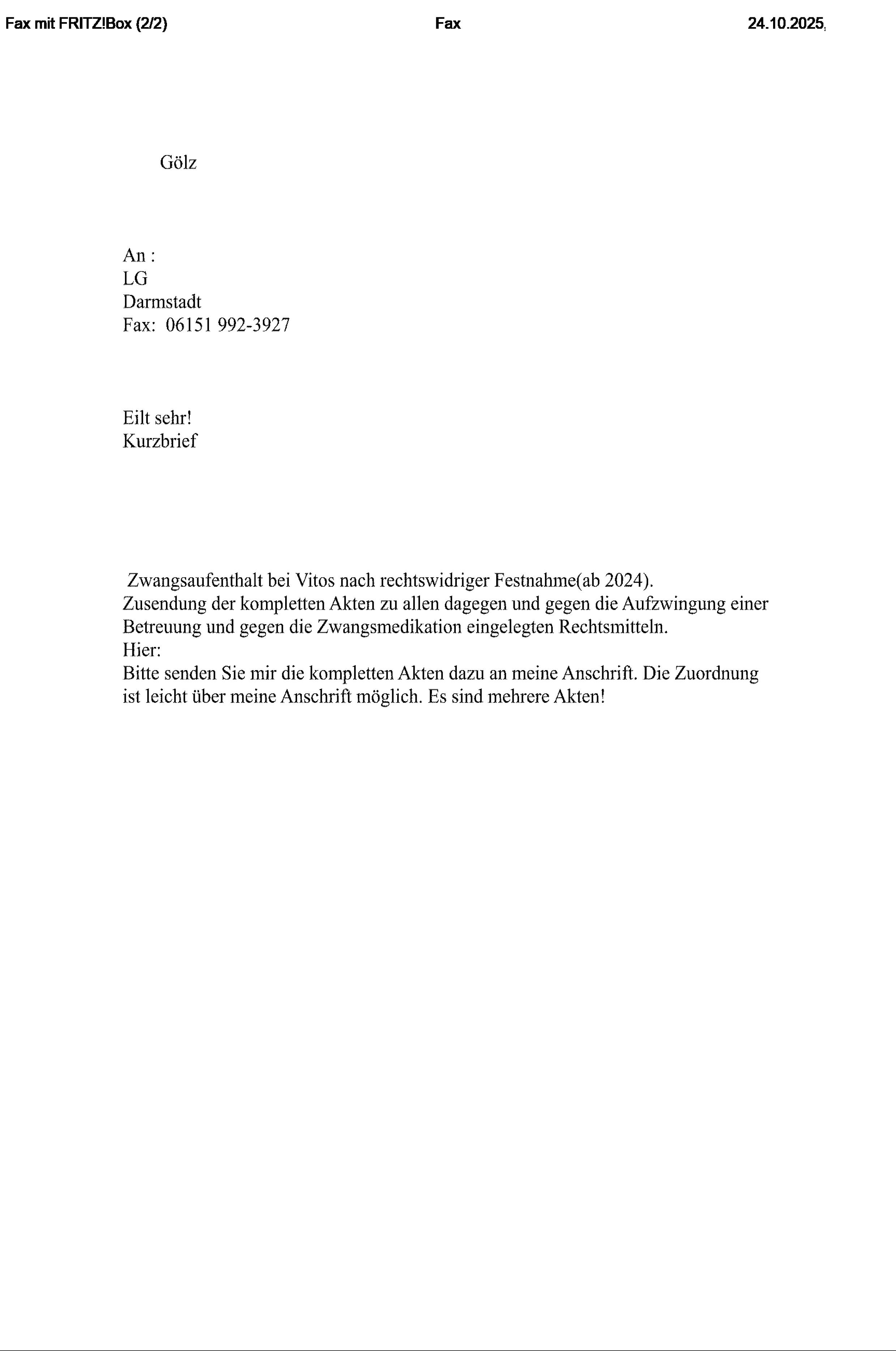 Mordfall Jürgen Gerstner - An den BGH Neuerliche Bitte um Akteneinsicht an Vitos Südhessen, es gab seit Beginn an nur den Blick auf einen banalen Satz bisher